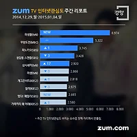 ‘TV 인터넷 관심도’란 줌닷컴이 현재 방영 중인 국내 142개 채널, 860여개 프로그램 중 누리꾼들의 인터넷 검색, 방송사 홈페이지 방문, 미리보기 및 다시보기 이용정보 등을 통해 형성된 빅데이터를 지표(인터넷 활동량 5만명 기준)로 정리한 것입니다. TV인터넷 관심도를 더 자세히 보고 싶으시다면 여기를 방문해 보세요.