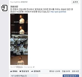 [향이의 SNS 팡팡]“안타깝다, 한국사회” [향이의 SNS 팡팡]“안타깝다, 한국사회”경향신문 사회관계망서비스(SNS) 지기인 ‘향이’가 주간 SNS 화제 게시물들을 소개해드립니다. 또 SNS 이용자들의 반응도 함께 전해드립니다. ■지난주(2월24일~3월2일) SNS에서 누리꾼들의 비판을 받은 동영상이 있었는데요. 유튜브에 ‘반도의 흔한 연수원’이라는 제목으로 올라온 동영상으로, 신한은행의 신입 행원들이 강당으로 보이는 곳에 모여 단체 연수를 받고 있는 장면을 담고 있습니다. 신입 행원들은 모두 양말을 벗고 일부는 바지를 걷어올린 채 기마 자세를 하고 양팔을 뻗고 서서 주인 정신을 기르자는 내용의 종이를 악을 쓰는 듯한 목소리로 읽는 장면이 담겼습니다. 페이스북에서 18만여명에게 도달, 1238명이 좋아요를 눌렀습니다. 트위터 이용자 @ode**.. 더보기 이전 1 ··· 102 103 104 105 106 107 108 ··· 307 다음
