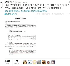 [향이의 SNS팡팡] 설국열차와 붕어빵 경향신문 사회관계망서비스(SNS) 지기인 ‘향이’가 주간 SNS 화제 게시물들을 소개해드립니다. 또 SNS 이용자들의 반응도 함께 전해드립니다. 12월 23일~29일 한주간 SNS를 뜨겁게 달궜던 소식은 다름아닌 철도노조 파업 소식이었습니다. 22일 경향신문 사옥과 민주노총 침탈하자 조계사, 민주당 등으로 흩어져 파업을 이어가던 철도노조는 30일 여야 합의로 국회에 철도산업발전소위원회를 설치해 민영화 등에 대해 논의키로 하면서 극적으로 파업을 철회했죠. 철도노조 파업, 체포에 혈안이 된 경찰, 수서발 KTX 야밤 면허 발급 등 관련 소식들이 연일 SNS를 뜨겁게 달궜습니다. ■ 경찰이 철도노조 간부를 검거하기 위해 가족의 산부인과 진료기록까지 불법적으로 수집했다는 단독보도(12월 28일자, http://.. 더보기 이전 1 ··· 114 115 116 117 118 119 120 ··· 307 다음
