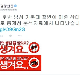 [향이의 SNS 통계] “바비인형은 가라...진짜가 아름답다" [향이의 SNS 통계] “바비인형은 가라...진짜가 아름답다" 경향신문 사회관계망서비스(SNS) 지기인 ‘향이’가 지난주(11월17일~23일) SNS 화제 게시물들을 소개해드립니다. 또 SNS 이용자들의 반응도 함께 전해드립니다.■통계청과 통계개발원이 발표한 ‘생애주기별 주요 특성 분석’ 자료를 보니 30대 후반 남성 가운데 절반이 미혼 상태인 것으로 나타났습니다. 정확하게는 1976~1980년 출생자의 미혼율이 남성 50.2%, 여성 29.1%였네요. SNS 이용자 상당수가 1976년~1980년생들 혹은 그 또래이기 때문에 이 소식이 많은 공감을 얻은 것 같습니다. 트위터에서는 1780번 재전송되고 190회 관심글로 지정됐네요. 페이스북에서는 2343명이 ‘좋아요’를 눌러주셨고 177회 공유되었습니다... 더보기 이전 1 ··· 15 16 17 18 19 20 21 ··· 307 다음