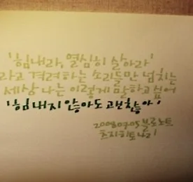 '새해 첫날 어떻게 지내셨나요?' 새해맞이 인증샷과 새해다짐 경향신문이 2011년의 마지막날인 12월31일과 2012년의 첫날인 1월1일 이틀 동안 SNS로 독자들의 세밑 보내기, 새해맞이 인증샷과 새해 다짐을 받았습니다. 강릉행 기관차 안에서, 해남 두륜산에서, 부산 광안리에서, 서울 N타워에서, 집에서....태국 방콕과 미국 샌프란시스코에서도 인증샷과 나의 다짐을 보내주셨습니다. 지면이 비좁아 다 실리지 못했는데요. 그 아쉬움을 경향 블로그에서 모두 기록하려고 합니다. 보내주신 멘션을 주제별로 모아봤습니다. khross지기는 갠적으로 @Yoonrpd님이 보내주심 멘션이 가슴에 남았습니다. "화이팅"만 넘치는 세상 속에서 애써 힘내지 않아도 괜찮은, 새 해가 되길 바라요. 힘내고 싶을 때만 힘내도 우리 많이 힘낼 수 있으니까요. 때로는 "힘내지 않아도 괜찮아!".. 더보기 이전 1 ··· 188 189 190 191 192 193 194 ··· 307 다음