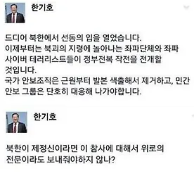 [세월호 참사] 차마 듣고싶지 않은, 망언들. 세월호 참사를 겪으며 희생자들과 유가족들을 위한 위로의 말, 사죄의 말이 그렇게도 어려웠던가요. 그게 어렵다면 최소한 상식에 어긋나는 말로 그 상처를 더 아프게 할퀴지는 말아야지요. 세월호 참사 이후 고위 공직자나 정치인, 교수, 언론인 등 사회지도층에 속하는 이들의 망언들을 기록해둘까 합니다. 4월20일새누리당 한기호 최고위원 자신의 페이스북에북한이 제 정신이라면 이 참사에 대한 위로의 전문이라도 보내줘야 하지 않나. 드디어 북한에서 선동의 입을 열었습니다. 이제부터는 북괴의 지령에 놀아나는 좌파단체와 좌파 사이버 테러리스트들이 정부전복 작전을 전개할 것입니다. 국가 안보조직은 근원부터 발본 색출해서 제거하고, 민간 안보 그룹은 단호히 대응해 나가야합니다. 기사읽기 >> 새누리 한기호 최고위원, 세월호.. 더보기 이전 1 ··· 87 88 89 90 91 92 93 ··· 307 다음